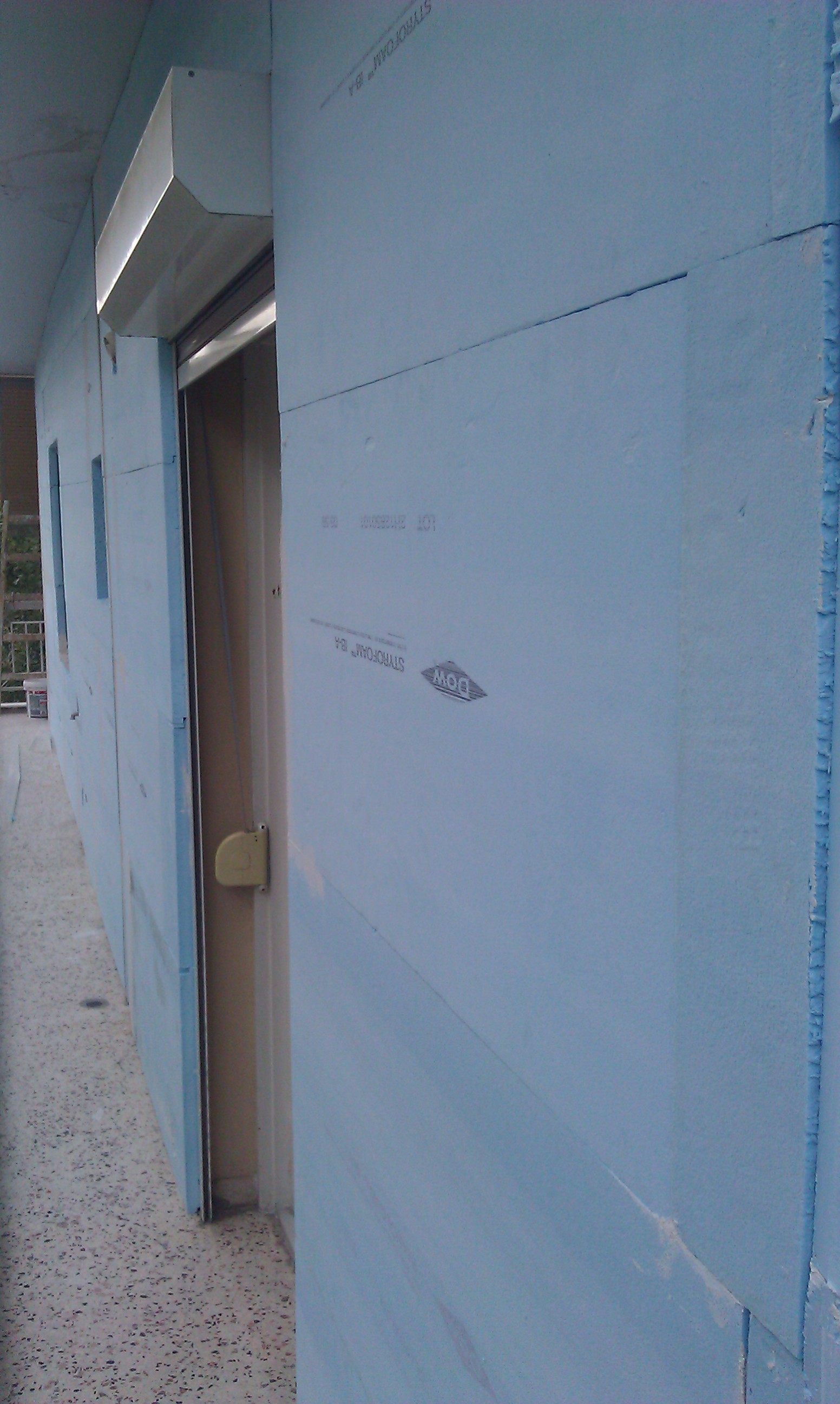 Ολοκληρώθηκαν οι εργασίες εξωτερικής θερμομόνωσης τοίχων του τελευταίου ορόφου με το πρόγραμμα ''Εξοικονόμηση Κατ' Οίκον''. Εφαρμόστηκε το πιστοποιήμενο σύστημα KELYFOS των εταιρειών ISOMAT και DOW. Το θερμομονωτικό υλικό που χρησιμοποιήθηκε είναι εξηλασμένη πολυστερίνη 5 εκ. Ο σοβάς ήταν έγχρωμος, στο χρώμα της πολυκατοικίας για τη διατήρηση της ομοιομορφίας.