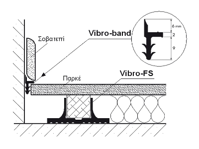 To Vibro-FM είναι μεταλλό ελαστικό αντικραδασμικό ξύλινων δαπέδων. Χρησιμοποιείται για την αντιμετώπιση του κτυπογενούς θορύβου των ξύλινων δαπέδων (παρκέ). Ο πρωτοποριακός σχεδιασμός του πιστοποιείται τόσο από διπλώματα ευρεσιτεχνίας όσο και από πιστοποιητικά δοκιμών.