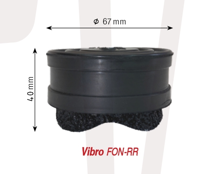 Το Vibro-FON-RR αποτελείται από το ίδιο ελαστικό κυάθιο και διαφοροποιείται λόγω του κύριου αντικραδασμικού στοιχείου που διαθέτει. Το στοιχείο αυτό είναι κατασκευασμένο από ίνες ανακυκλωμένου καουτσούκ συνδεδεμένες με ειδική κόλλα, οι οποίες διαθέτουν 2 κυματοειδείς επιφάνειες. Αυτό το ειδικό υλικό, το οποίο είναι ο πυρήνας του αντικραδασμικού συστήματος, περικλείεται μέσα στο ελαστικό κύπελλο. Το Vibro-FON-RR, χάρη στην επιφάνειά του που διαθέτει κυματοειδή διαμόρφωση, έχει την δυνατότητα να αυξάνει την ενεργή επιφάνεια έδρασής του όταν αυξηθεί το βάρος που εφαρμόζεται σε αυτό. Ταυτόχρονα όμως η φυσική του συχνότητα παραμένει σταθερή. Επομένως η συμπεριφορά αυτή το καθιστά κατάλληλο για ένα μεγάλο εύρος φορτίου.