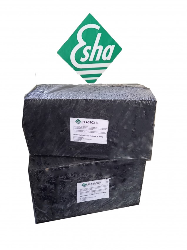 To PLASTOX III είναι ασφαλτόκολλα για ασφαλτικές στεγανωτικές μεμβράνες. Ακολουθεί την προδιαγραφή ASTM D-312, type III.