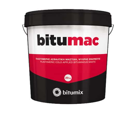 Το BITUMAC είναι μίγμα τροποποιημένης ασφάλτου με ελαστομερή πρόσθετα, ορυκτές ίνες, ειδικά πρόσθετα, οργανικούς διαλύτες και αδρανή υλικά. Είναι ασφαλτική μαστίχη ψυχρής εφαρμογής με εξαιρετική πρόσφυση τόσο σε πορώδεις όσο και σε λείες επιφάνειες. Το BITUMAC παρακολουθεί τις συνήθεις παραμορφώσεις του αρμού από τις θερμοκρασιακές συστολοδιαστολές, λόγω των θερμοπλαστικών ιδιοτήτων του. Είναι απρόσβλητο από αραιά διαλύματα οξέων και βάσεων και δεν επηρεάζεται από άλατα του υπεδάφους. Είναι ευαίσθητο όμως στη χρήση πετρελαιοειδών.