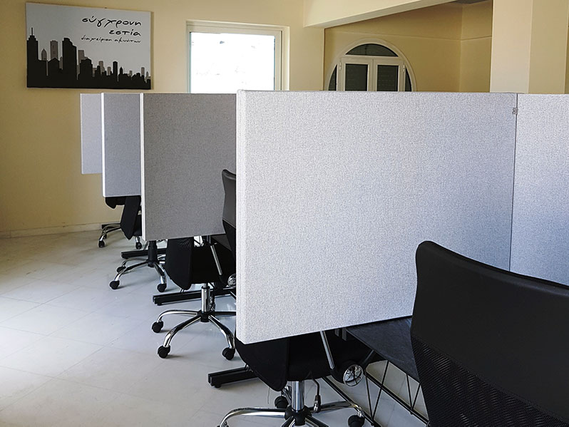 Διαθέτουν πολύ υψηλή ηχοαπορρόφηση, δημιουργούν ένα καλύτερο, πιο ήσυχο και παραγωγικότερο περιβάλλον εργασίας, απομονώνοντας τους χώρους γραφείου τόσο οπτικά όσο και ακουστικά.