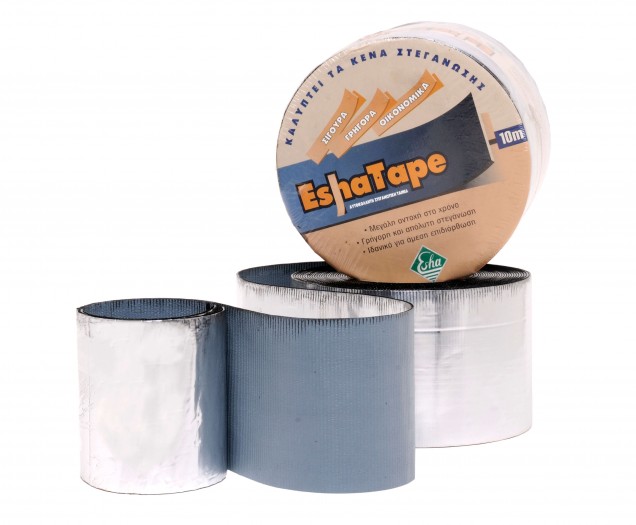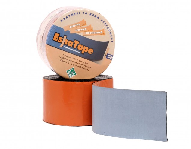 Η αυτοκόλλητη στεγανωτική ταινία EshaTape είναι ασφαλτικό στεγανωτικό φύλλο προηγμένης τεχνολογίας. Kατασκευάζεται απο ελαστομερή άσφαλτο (SBS) και φέρει επικάλυψη πολυεστερικό αλουμίνιο μεγάλης ευκαμψίας και αντοχής.