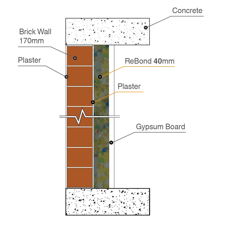 Το ReBond δηλαδή, χρησιμοποιείται σαν ενδιάμεσο υλικό πλήρωσης σε τοίχους και οροφές από πολύφυλλα δομικά κελύφη, προσφέροντας βελτίωση της ηχομονωτικής ικανότηταςτου δομικού στοιχείου.