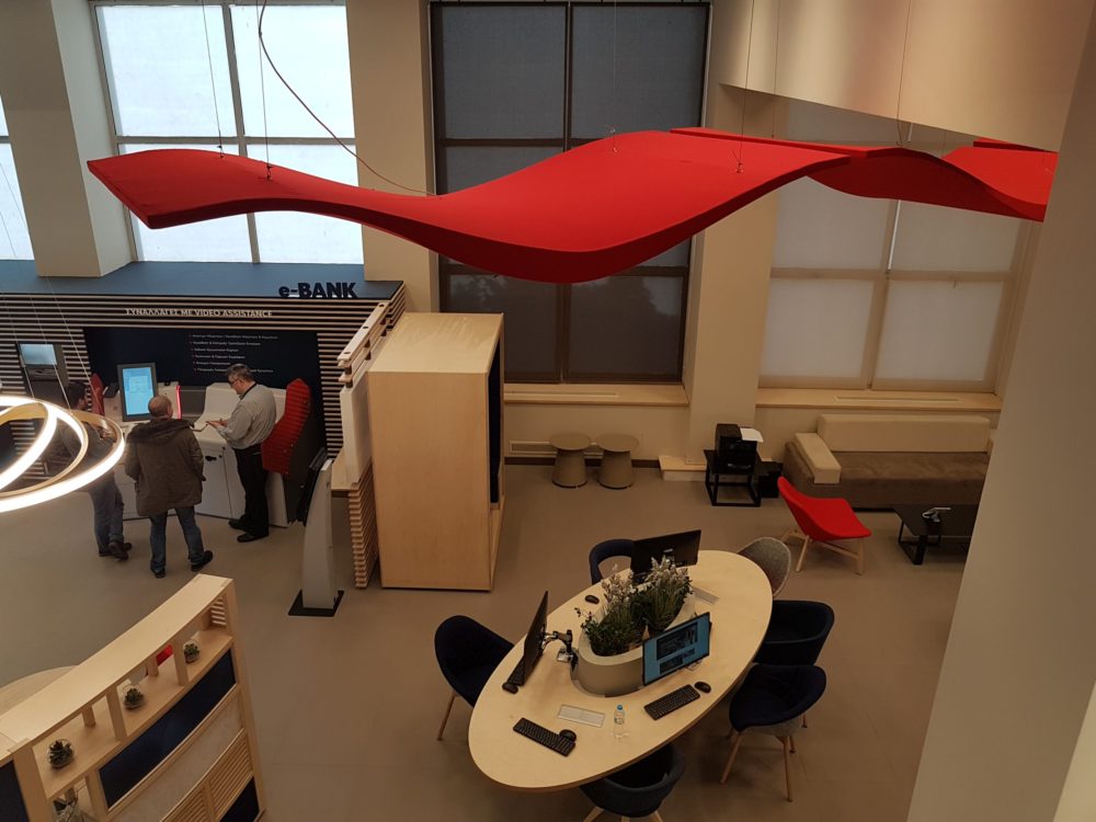 Το ALPHAcoustic – Kima αποτελεί μία λύση που μπορεί να προσθέσει διακοσμητικό χαρακτήρα σε ένα χώρο σε σχέση με τα ορθογώνια ηχοαπορροφητικά πάνελ που συνήθως έχουν σαν στόχο να μην αποτελέσουν αρχιτεκτονικό στοιχείο του χώρου. Συγκεκριμένα για μεγάλους χώρους όπως τηλεφωνικά κέντρα, open space γραφεία και καταστήματα με μεγάλη συγκέντρωση κοινού, αποτελεί μια λύση που θα αναβαθμίσει τον χώρο όχι μόνο ακουστικά αλλά και αρχιτεκτονικά.