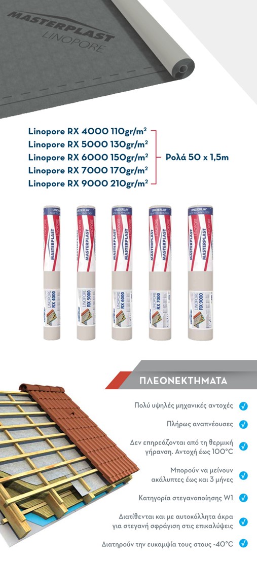 Αναπνέουσα Μεμβράνη Κεραμοσκεπής Linopore + Tape