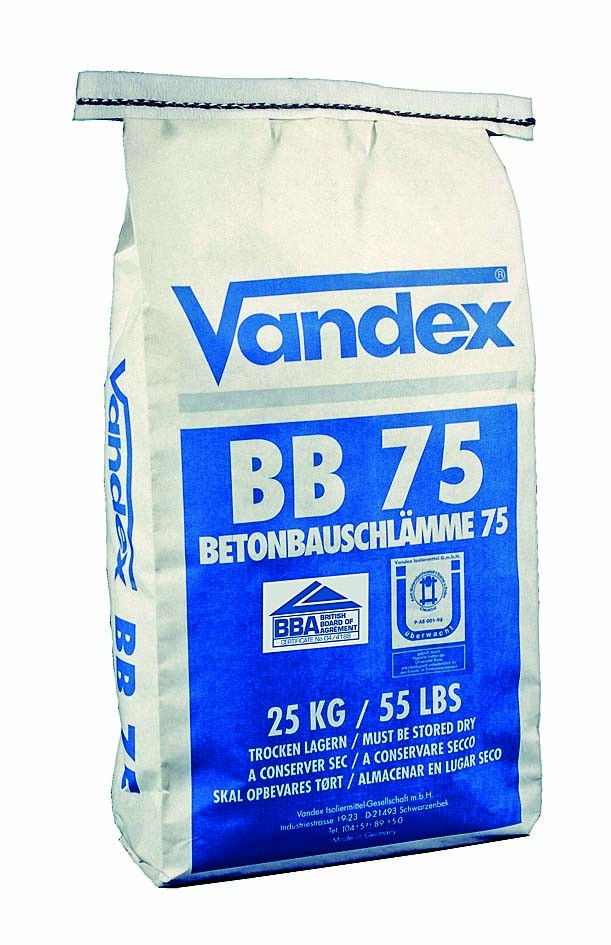Το Vandex BB 75 είναι προϊόν του Ελβετικού οίκου Vandex, ο οποίος έχει εκτεταμένη εμπειρία, από το 1946, στην τεχνολογία και την εφαρμογή των τσιμεντοειδών στεγανωτικών προϊόντων.