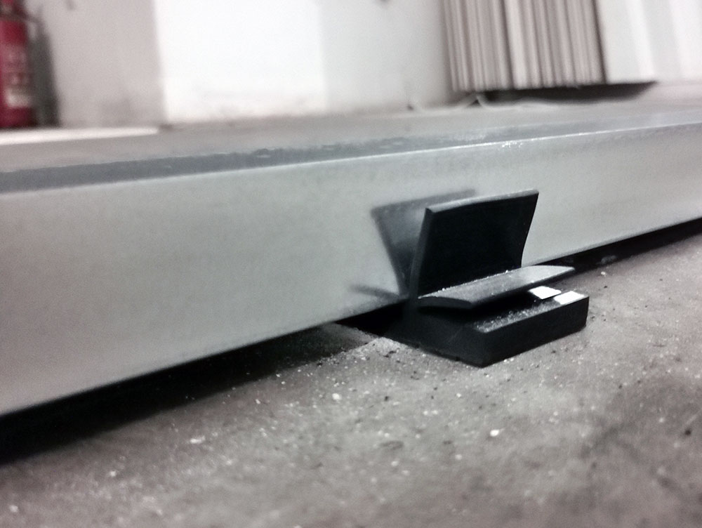Η διαμόρφωση της βάσης παρέχει τον απαραίτητο χώρο για την εκτόνωση του ελαστικού, αυξάνοντας την υποχώρηση και βελτιώνοντας την απορρόφηση κραδασμών. Τα κεκλιμένα πτερύγια μπορούν εύκολα να ανασηκωθούν εξασφαλίζοντας τη μη επαφή της γυψοσανίδας με το βύσμα στερέωσης στο δάπεδο.