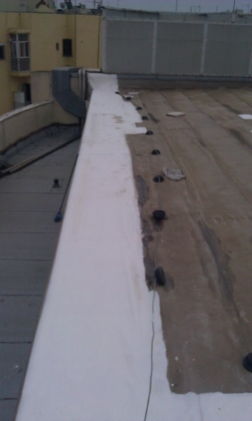 Τελείωσαν οι εργασίες στεγανοποίησης και συντήρησης της υπάρχουσας στεγανοποίησης στο δώμα του κτιρίου ''Ολύμπιον'' στη Θεσσαλονίκη. Σχετικά με τη στεγανοποίηση, χρησιμοποιήθηκε πλαστομερές ασφαλτόπανο γαλλικής προέλευσης, 5 kg/m2, με λευκή ψηφίδα. Για τη συντήρηση της υπάρχουσας στεγανοποίησης χρησιμοποιήθηκαν ακρυλικά επαλειφόμενα υλικά λευκού χρώματος και ταινία υαλοϋφάσματος στις ραφές των ασφαλτοπάνων.