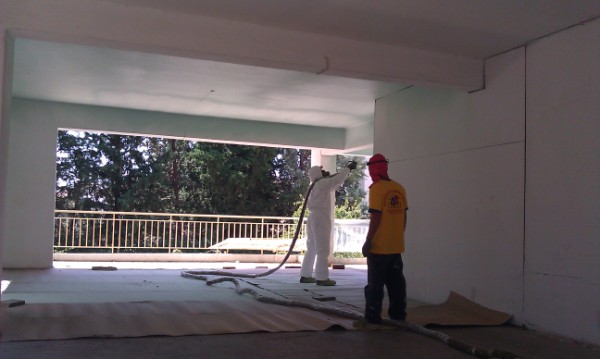 Η πολυουρεθάνη χρησιμοποιείται πολύ συχνά στη θερμομόνωση υφιστάμενης πυλωτής λόγω της γρήγορης εφαρμογής της και λόγω της ικανότητας της να ψεκάζεται σε ανάποδες επιφάνειες, όπως αυτή. Το πάχος της πολυουρεθάνης εξαρτάται από το πάχος που ορίζει ο ισχύων ΚΕΝΑΚ (Κανονισμός Ενεργειακής Απόδοσης Κτιρίων), τις ανάγκες της κάθε περίπτωσης, την υπάρχουσα θερμομόνωση, το κλίμα της περιοχής κ.α. αλλά συνήθως κυμαίνεται από 3 cm - 7 cm. Ιδιαίτερη προσοχή δίνεται στα δοκάρια τα οποία αν δεν μονωθούν αποτελούν θερμογέφυρες. Η πολυουρεθάνη καλύπτεται απαραιτήτως στο επιθυμητό χρώμα προς προστασία από την ηλιακή ακτινοβολία και τις καιρικές συνθήκες. Λόγω της φύσης του ψεκασμού σκεπάζονται όλα τα αντικείμενα που βρίσκονται στην πυλωτή με νάιλον αν και καλύτερο είναι να απομακρύνουμε όσα μπορούμε κατά τη διάρκεια των εργασιών. Η τελική επιφάνεια της πολυουρεθάνης δεν είναι τόσο ίσια και λεία όσο ένας τοίχος αλλά τις περισσότερες φορές αυτό δεν δημιουργεί πρόβλημα στη θερμομόνωση πυλωτής.