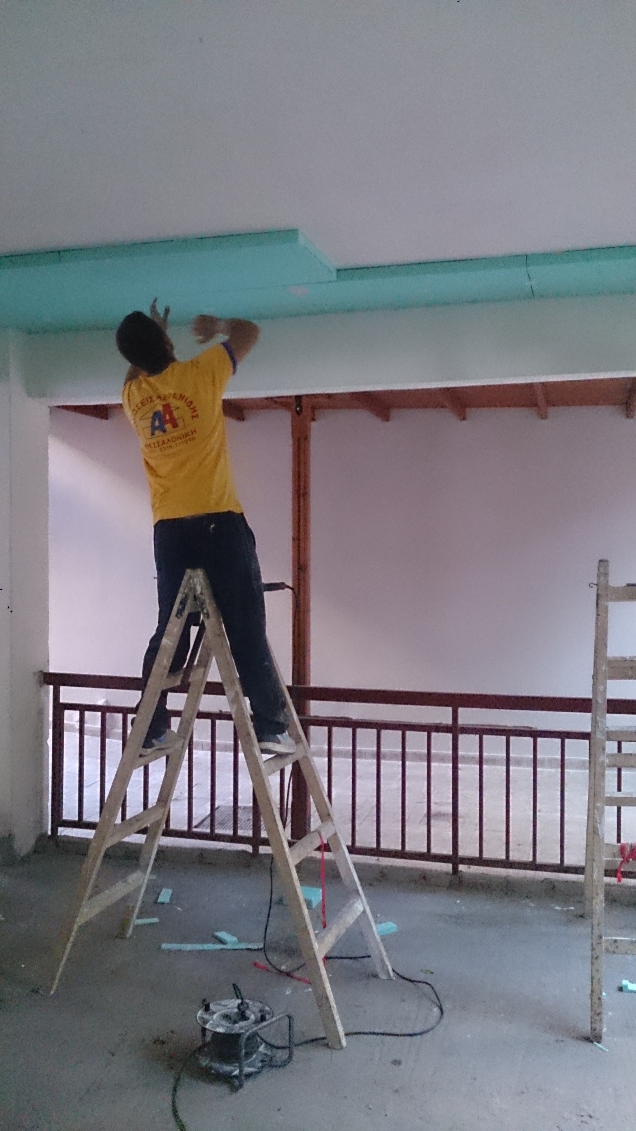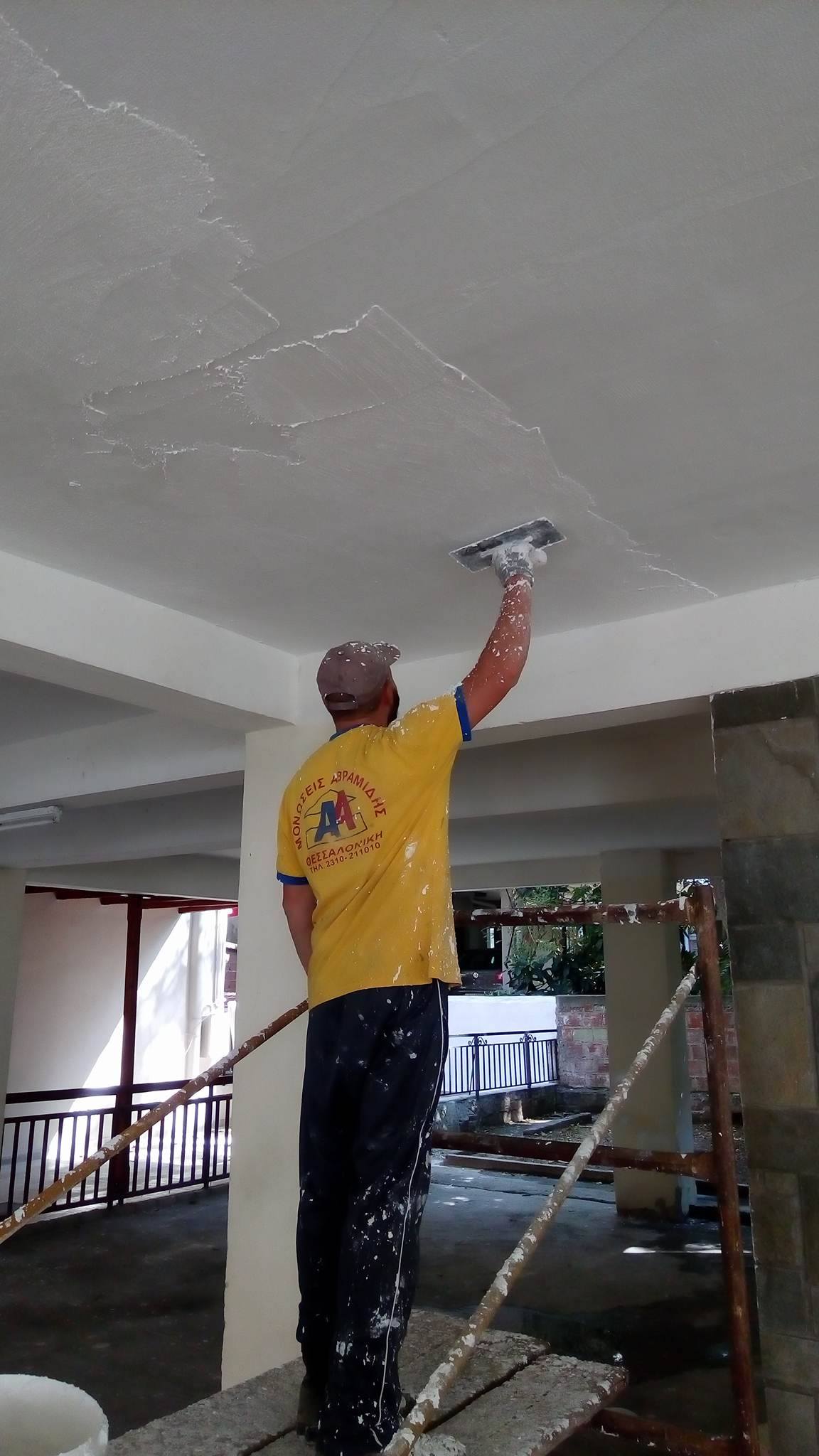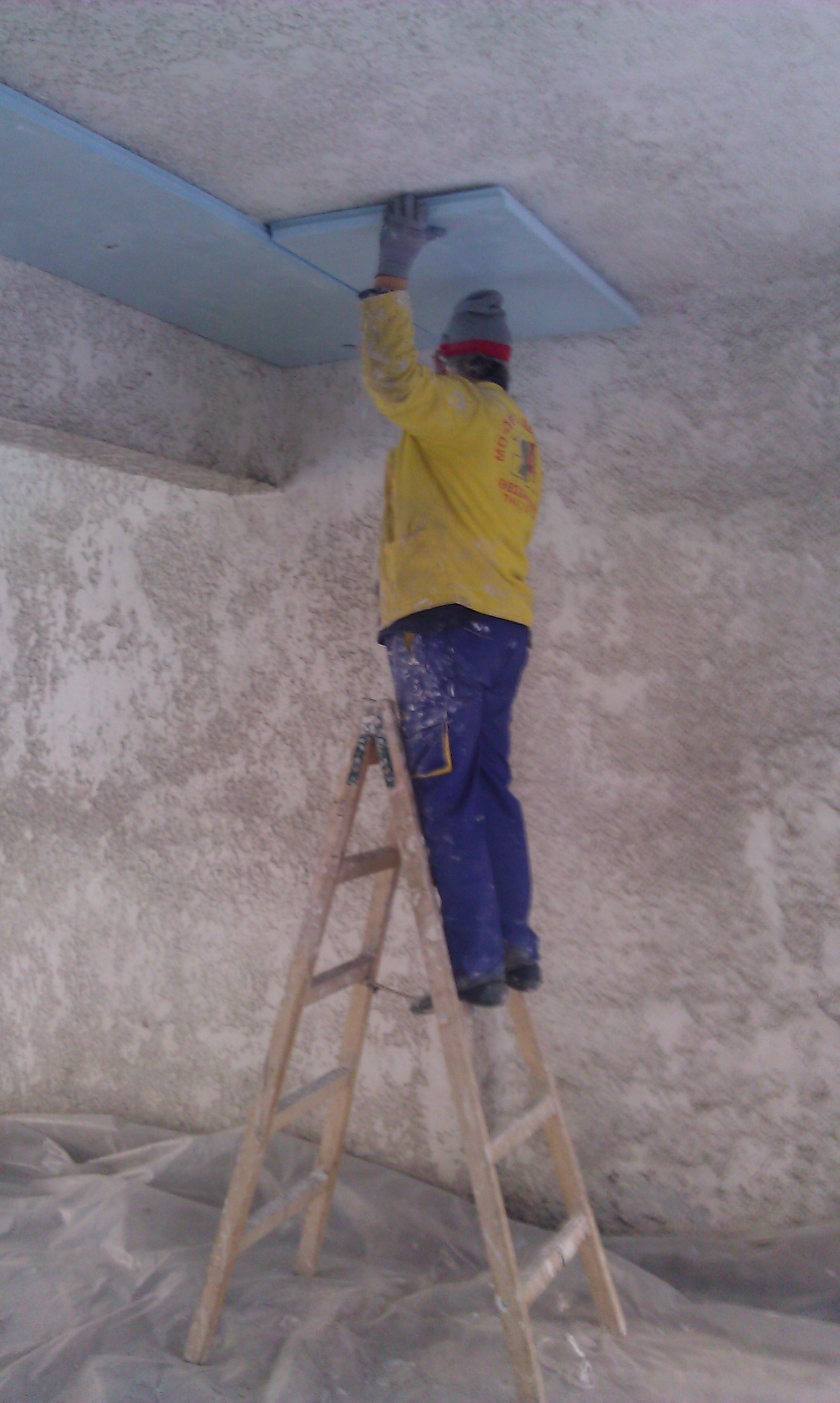 - Προετοιμασία της επιφάνειας. Καθαρίζουμε την οροφή από σαθρές επιφάνειες.