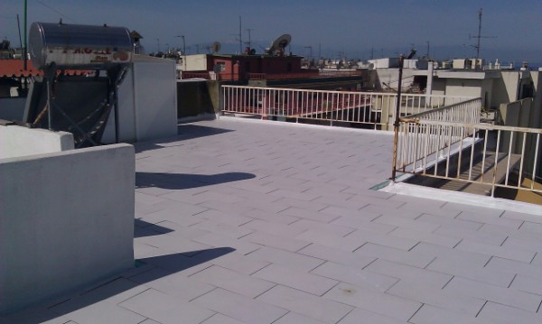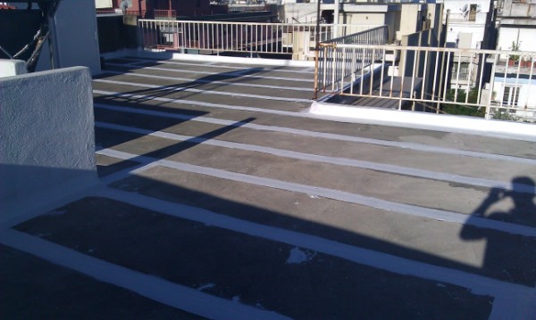 - Στεγανοποιούμε το δώμα και τα στηθαία με επικόλληση ασφαλτοπάνων.