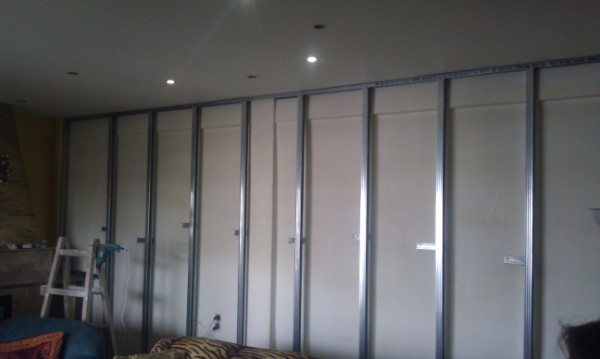 Ακολουθεί η τοποθέτηση και η στερέωση της μονής ή διπλής γυψοσανίδας.